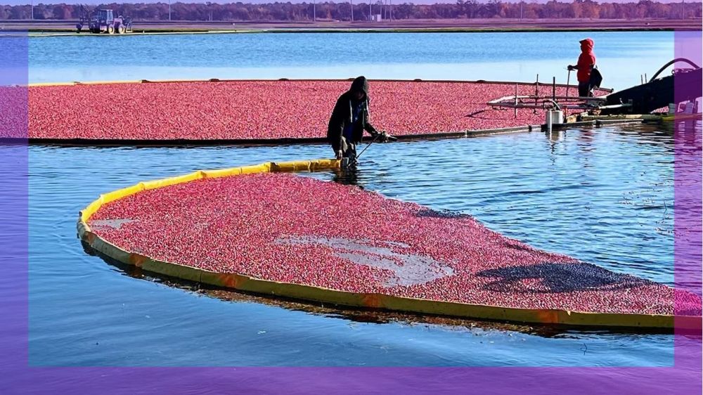 我第一次见到蔓越莓收获的画面,也十分震撼,特地问友人要来原图。友人慷慨提供。