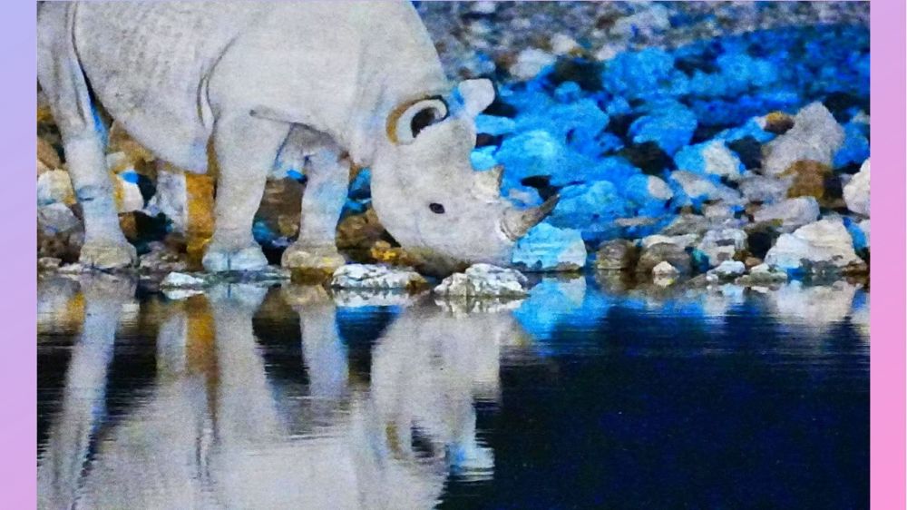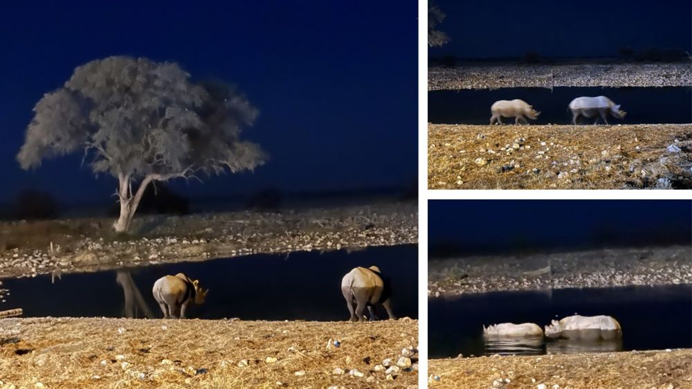 “来啦来啦!”当两只白犀牛大摇大摆地步入视线时,我们停止了呼吸,忘记了眨眼,呆呆地注视着自然生态下的犀牛中的大哥大。它们一前一后地踱到塘边,慢悠悠地低头饮水,完全不在意黑暗中凝视它们的一双双火辣辣的眼睛。