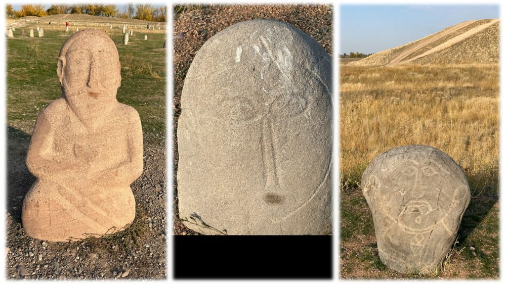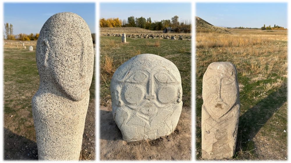 布拉纳遗址一角的“突厥石像”区让我讶异。各具形态的众多石人,不规则地矗立在荒草地上,好似在迎接我们的到来,但却猜不透他们的心思。他们有的默默冥想,有的若有所思,无喜无悲,无欲无求。