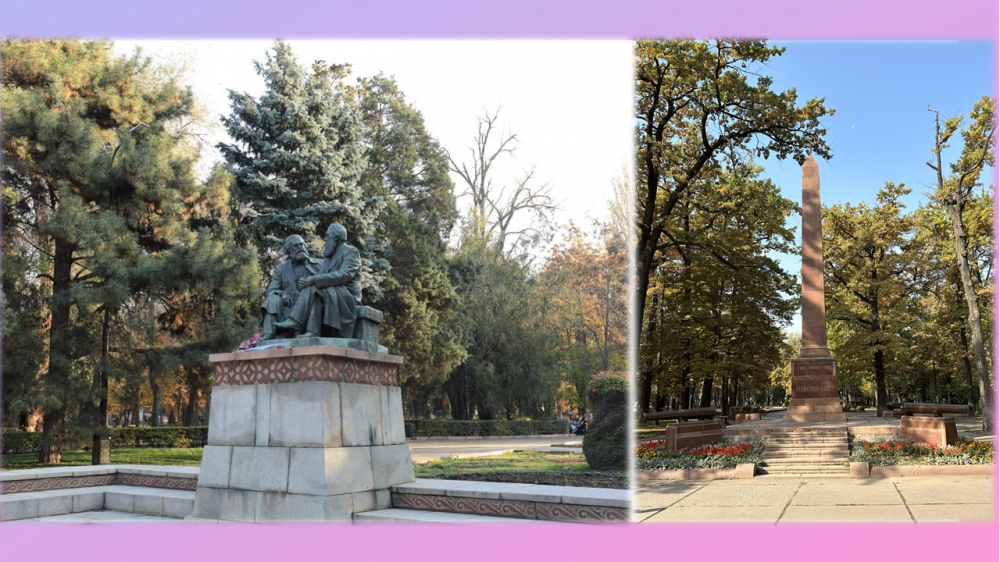 下右:民族友谊纪念碑是一座重要的旧时代纪念碑式艺术作品,是为纪念吉国自愿加入俄罗斯帝国一百周年(1876-1976年)而建的,彰显了俄吉人民之间的友谊。