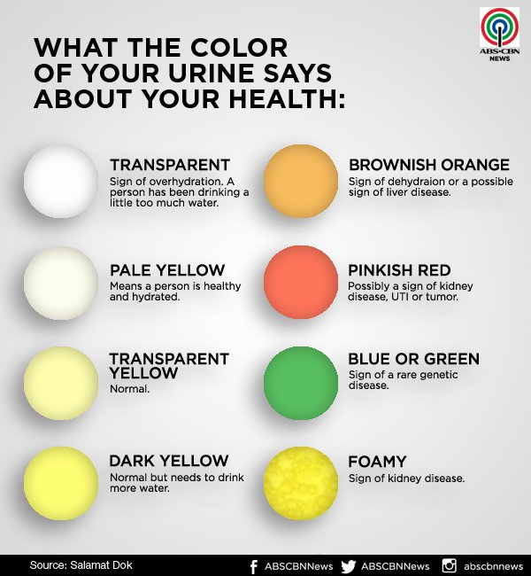 水是生命之源。 没事多喝水吧。 但也不能喝得太多哟! 当尿液白色透明(第一个圆)时, 那你有可能喝得太多了.