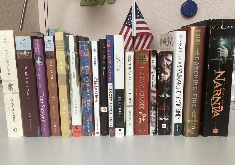 看看我书架的英文书籍,居然好多都在不同的州被禁或被质疑。下面这些书都因为各种不同的理由上了“黑名单”。