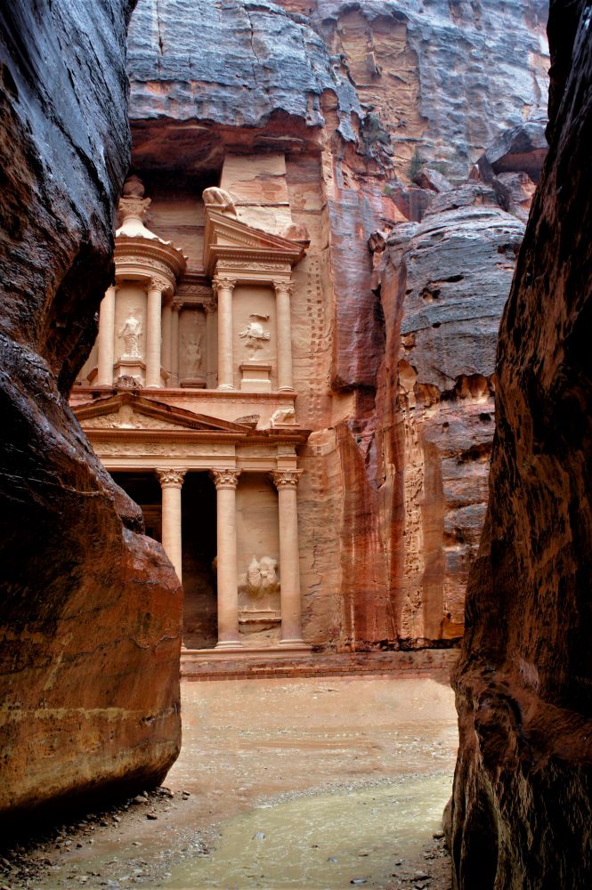 人算不如天算,去佩特拉的那天雨雪交加。雨水导致山谷里的水位升高,开门时间拖后了两个小时不说,卡茲尼神殿后的路段还不让进。看我在有人把守的路口张望,两个当地人上来问我想不想进去里边?谈好的价钱,被他们拉着从把守路口的人前走过。把守路口的人想拦我们,被他们两个人怒怼回去。