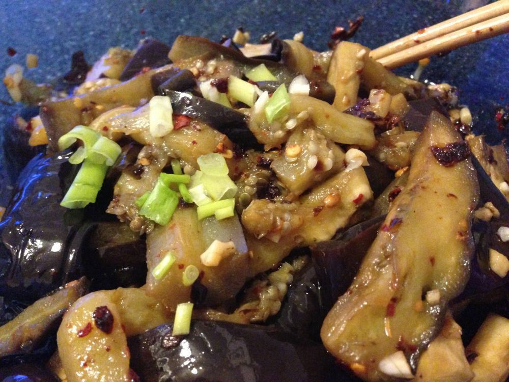 凉拌茄子:茄子切长条置微波炉打热至熟,再加油盐酱醋凉拌即可,简单方便。