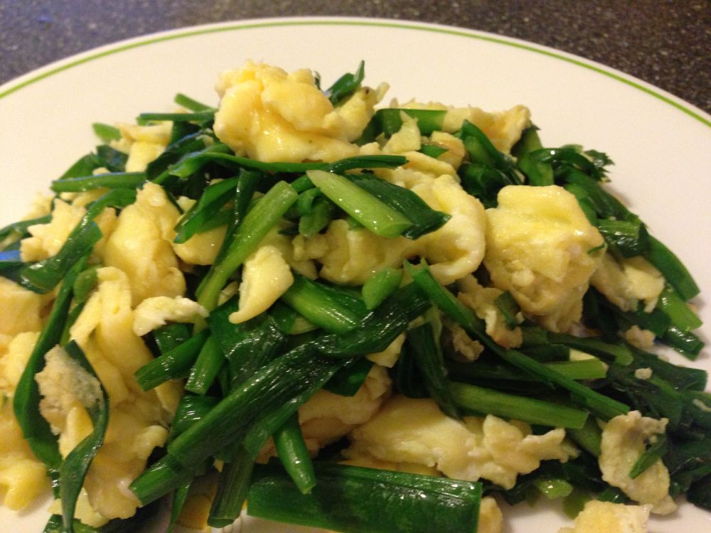 韭菜炒鸡蛋:记得小时候吃饭串门子,大家都爱问各家各户吃什么菜。如果刚好那天吃韭菜炒鸡蛋,必定要得意洋洋的说:“今天晚上吃十个菜!” “哪十个?” “九菜加鸡蛋!”