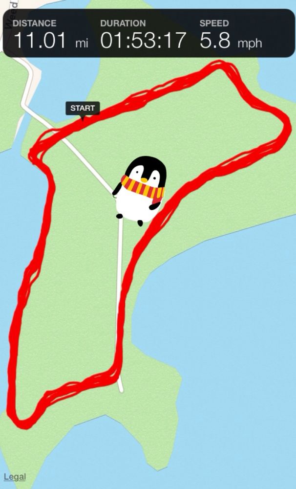 写完以上的文字以后,我就去跑步啦!虽然跑到最后体力不支,但还是坚持跑完了11英里,打破了个人的长度纪录,而且速度也比上次的10英里有稍微的进步哦!