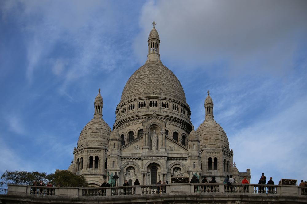而圣心大教堂又称白教堂,因其外观为白色而得名。”圣心大教堂呈白色,其风格奇特,既像罗马式,又像拜占庭式,兼取罗曼建筑的表现手法。它洁白的大圆顶具有罗马式与拜占庭式相结合的别致风格,颇具东方情调。“沿着台阶上去,就能到达这座蒙玛特山顶的教堂。因其坐落在山顶,视野开阔,可以俯瞰巴黎,绝对值得一看。