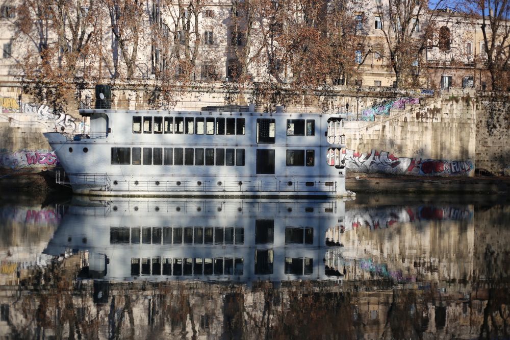 与巴黎相似,罗马城里也有一条小河,只不过比起塞纳河的摇曳生姿来,这条小河比较脏,两旁也充满了腐朽的臭味和淤泥。河面上似乎是一座无人照理的双层大船,不知它是如何通过那些小桥孔到达这里的。