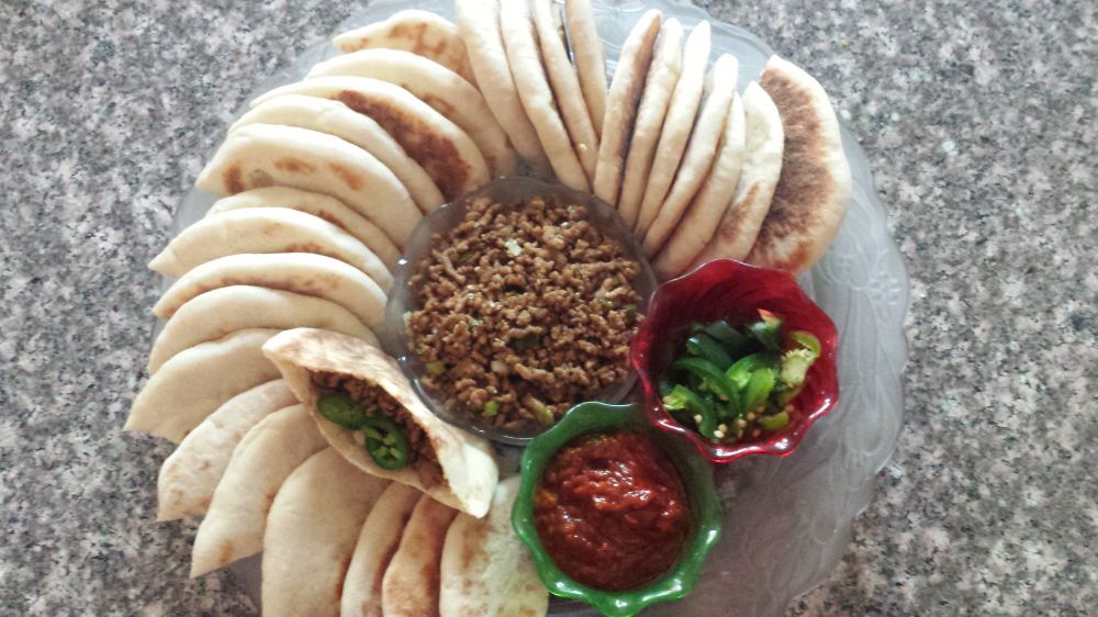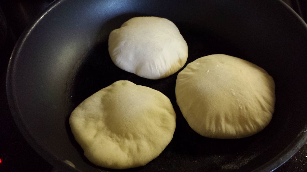 6 切饼:趁热时把饼一切两半,用刀子把半张饼从中间划开,做成口袋状,这就是口袋饼的由来 (刚发现底下这张照片是糊的,请原谅啊!)