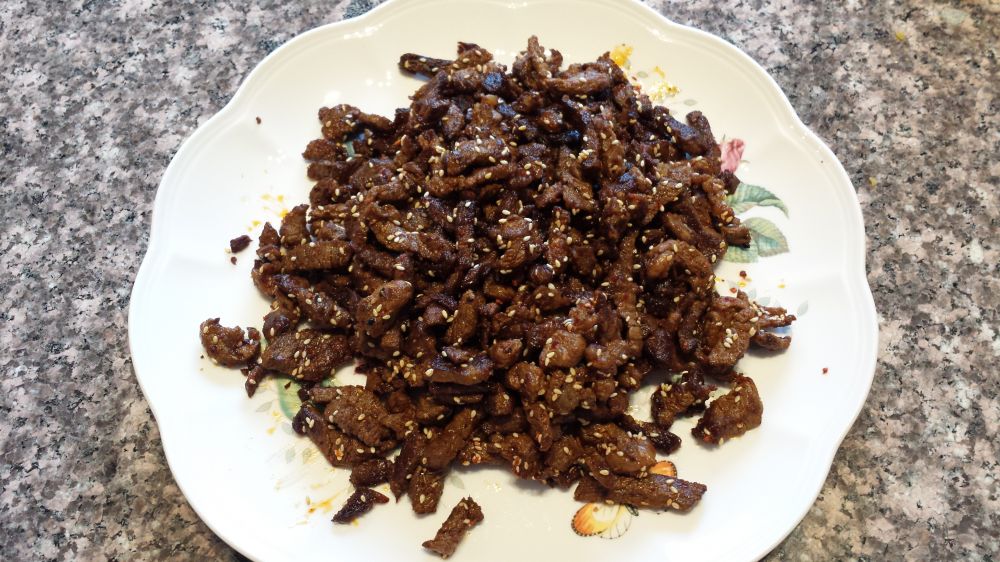若妖厨房好长时间没做饭饭了,今天露一手:牛肉干,麻辣,又下饭,包准你百吃不厌!成品见上图。