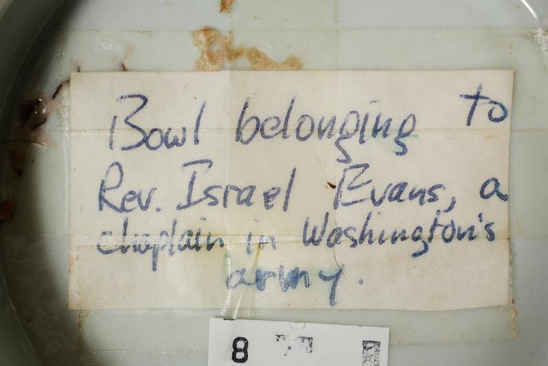 伊斯雷尔·埃文斯牧师生于1747年于Chester County (PA);逝于1807年于Concord (NH)。如果这个瓷器属于他的话,至少要老于C1800年,那么这个瓷碗要断代到什么时候呢?