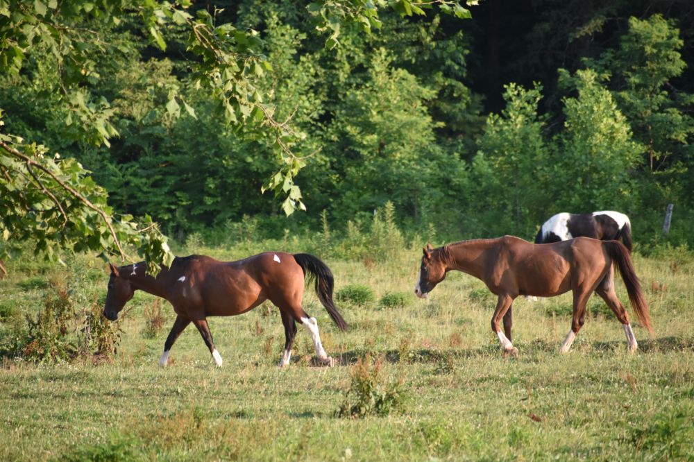 再次沿着恬静的单行的景观公路开,又大开眼界:养马场的马全在草地上撒野呢!来得早还不如来得巧,我们全赶上了!