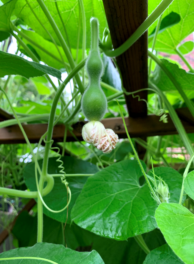 院子里葫芦正在开花结果,这是老大爱吃的,可惜现在没长大,下个月他也吃不上。老爸说:“到时候寄一个。”我说:“两周以后他就搬离公寓了,你往哪儿寄?”