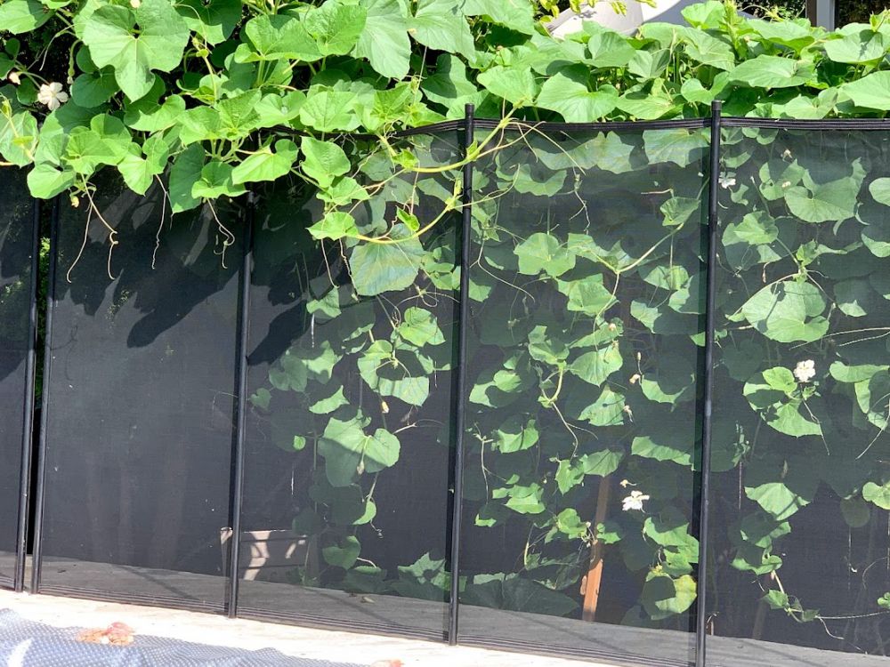 接着葫芦往游泳池爬,顺着游泳池的篱笆往下走,远远看过去就像口渴了,要探头去喝游泳池里的水似的。
