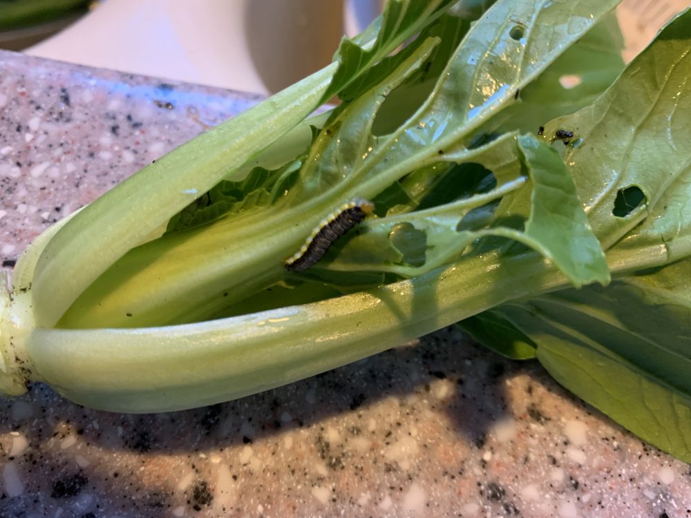 想想虫子也得有饭吃,还是把这根青菜还给它吧。