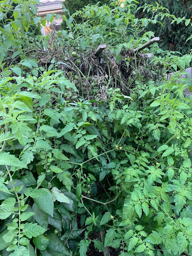 下班以后奔后院,首先看有无可摘的西红柿。红彤彤的已经不多,把有一丝红的也摘了。