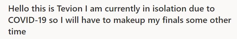 还有一位考试当天被隔离了: