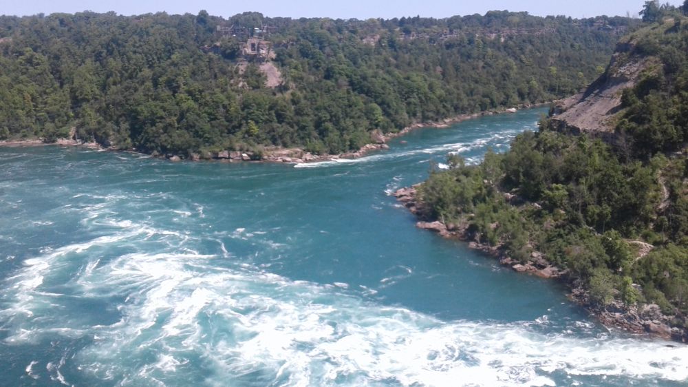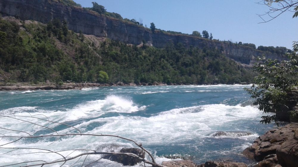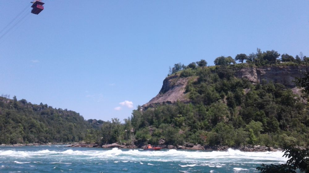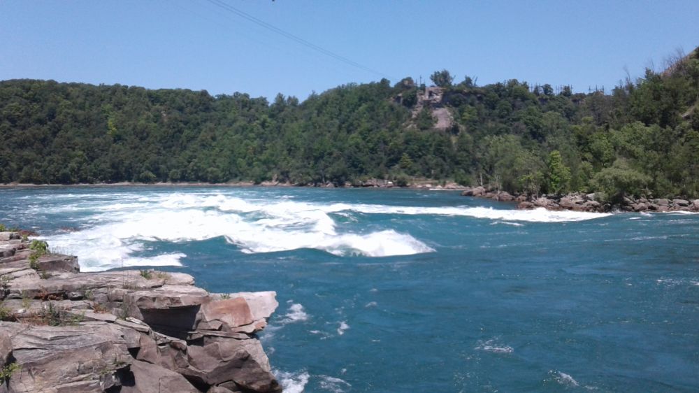沿着马路边小径走到漩涡whirlpool,下山到河边,在那里看钓鱼,游船,吊车和直升机,出去玩的人多,直升机一直不顶的飞,生意不错:)