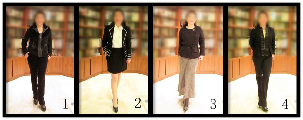 厚夹克,最常见的就是纯毛或毛涤混纺夹克了。可长可短,款式迥异。我常穿黑色,它不仅有收缩的效果,而且容易与其他任何颜色搭配。但若以素色为主来打扮,对黑色夹克的掌控,就要求高些,我需花心思来安排,整体协调,又不沉闷。现来看看以下四种品牌夹克的质地,风格与搭配。