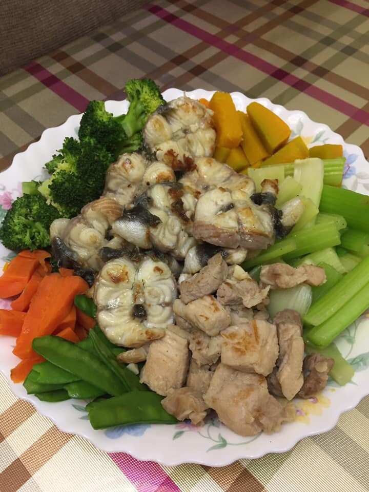 1)先將西蘭花、南瓜、甘筍用鹽水煮熟,瀝乾水伴碟。