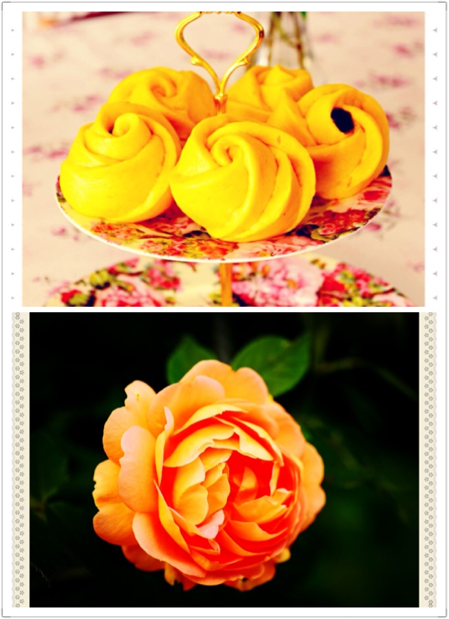 在私房学的玫瑰花馒头,用南瓜和的面。