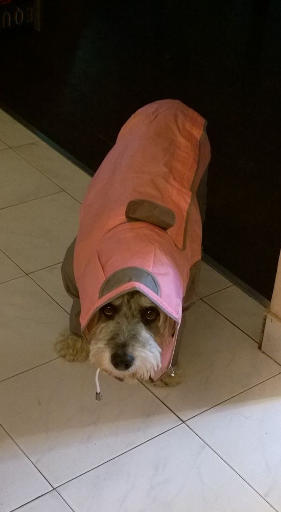 就这样,Co不情不愿地穿着新雨衣和老妈冒雨出门了。