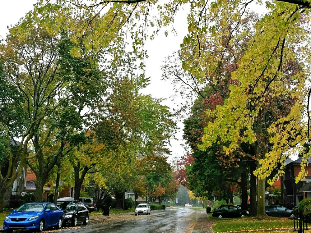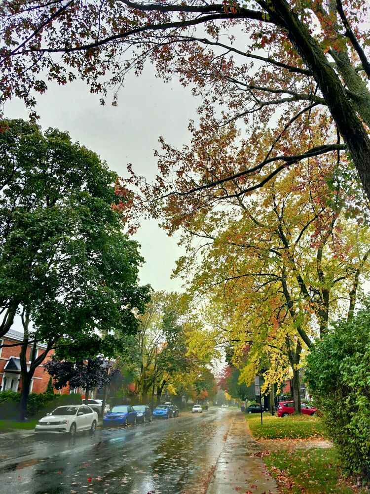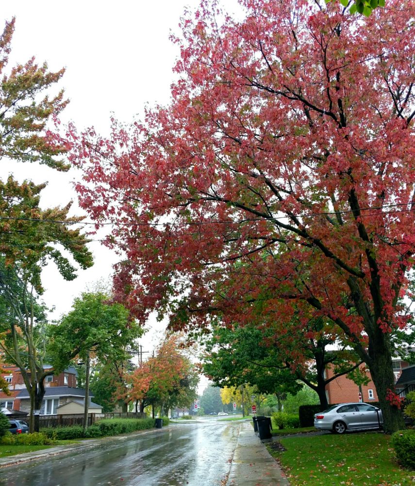 还别说,今天的秋叶,比正在步入秋天的过往几天哪天都漂亮,五彩的魅力之秋在淅沥沥的雨中悄然漫入眼帘了。