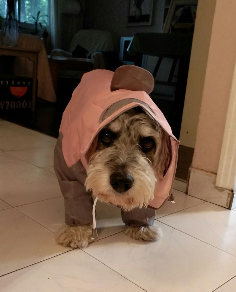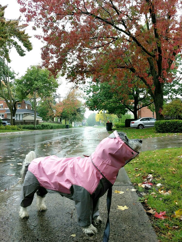 就这样,蒙蒙细雨不断地落在Coco身上,可在新雨衣的保护下,他边走边赏着秋景,竟还越来越快活起来了。