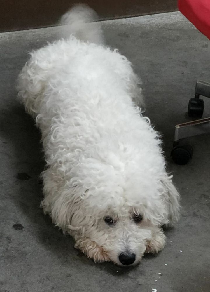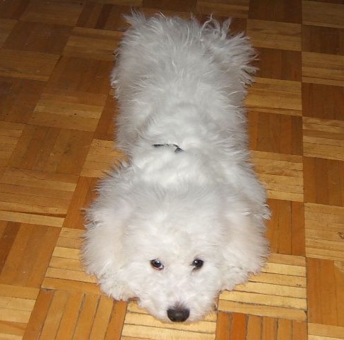 (注:老妈观察到,Co的这种姿势常是他郁闷时才摆,比如,说带他出门,却等了又等总没兑现的时候。火锅家人观察到火锅也会这样。不过和老妈出去,老妈在一地拍照,不管磨蹭多久,Co都等着,并不摆这种姿势,可能是心情好就有耐心)