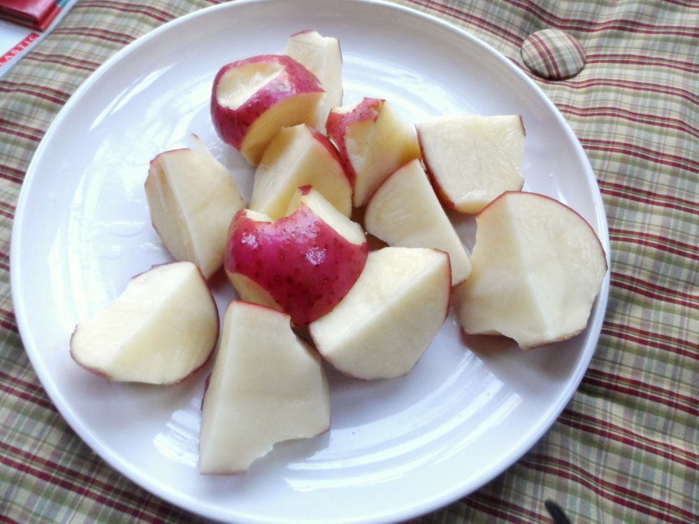 虽然我们家只有四口人,其中两个还是小朋友,但是上个星期我丈夫买了好一大袋土豆回来。为了抢在土豆发芽之前把土豆消灭掉,我家几乎每天饭桌上都有土豆。好在我们全家都喜欢土豆,而且我也试着用不同的方法去烹调,虽然我们全家吃了一个星期的土豆,还没到吃腻的地步。
