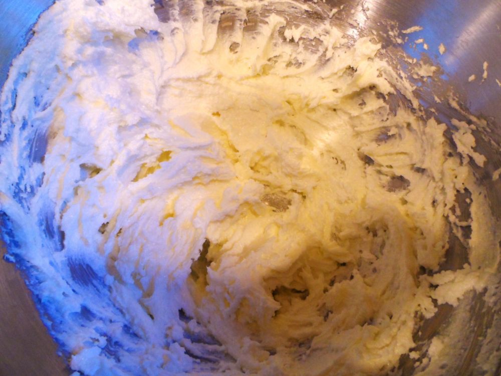 室温放软的 unsalted butter1条,白糖72g,all-purpose flour 140g, baking powder半小匙,蛋2个,牛奶50 ml。 (蛋和牛奶也要室温)