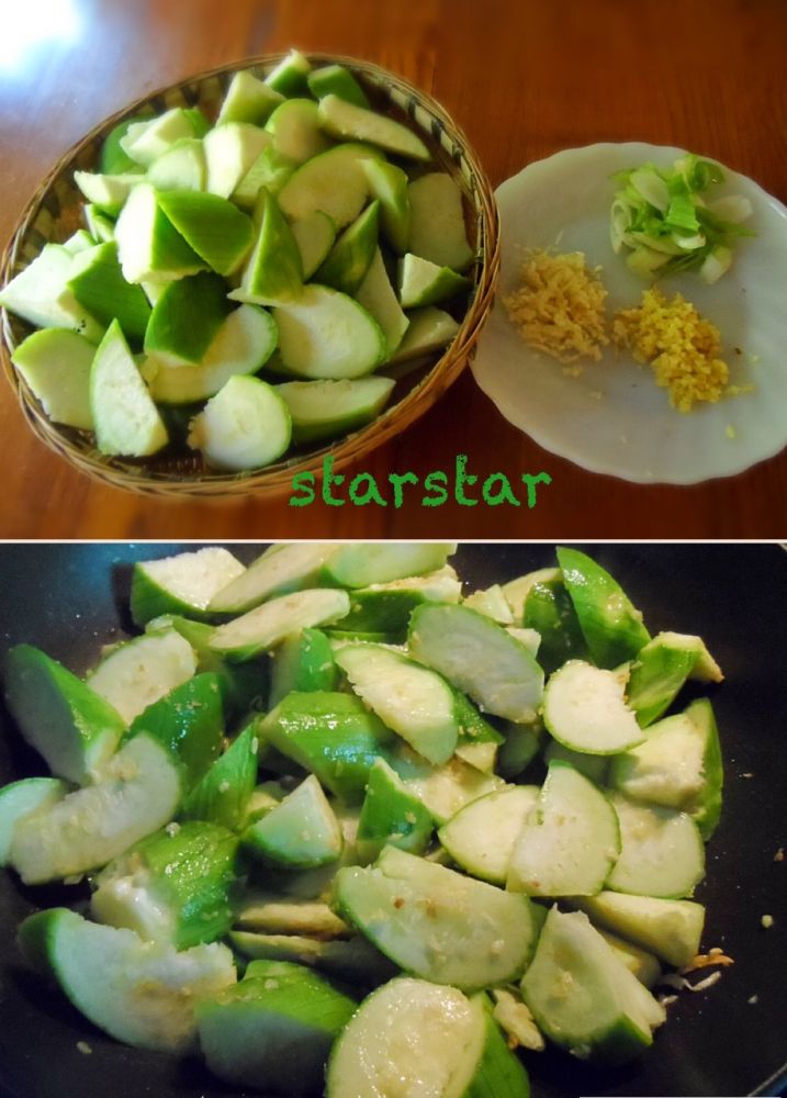 这次她的丝瓜我用姜蒜清炒,味道保持了丝瓜特有的清香。这道菜几乎没有一点技术含量,家常得不能再家常了, 我喜欢。