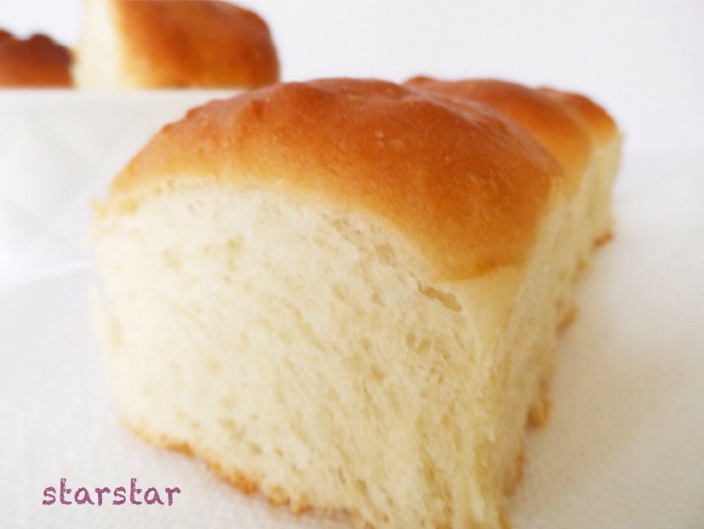 然后我就想起了这个面包。这个面包不用custard powder。这个面包的口感和那个中式小面包一样也是又软又松,在家常面包里面来说,这个面包味道也是很好的了。这个面包我几年前是常常做的,成功率也是很高。