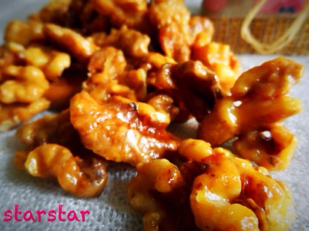 好吃的程度呢,自夸一句吧,在我家party上吃过这道琥珀桃仁的人,都向我要过方子,而且难以相信做法居然这么简单,他们都以为这么香酥脆甜的琥珀桃仁做法应该有点复杂的。