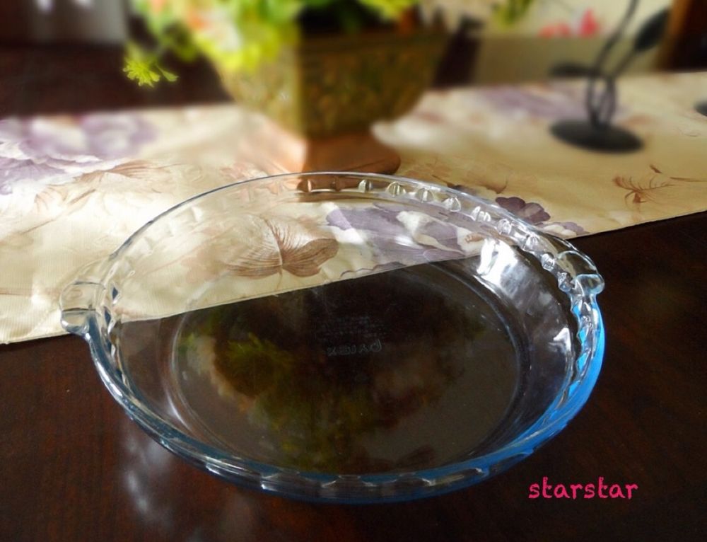 下面这个派盘,我只真正用过几次做过pie,其余时候全被我用作制作微波炉小吃的工具了,用这个盘做微波炉版的蒜香花生也是极佳!