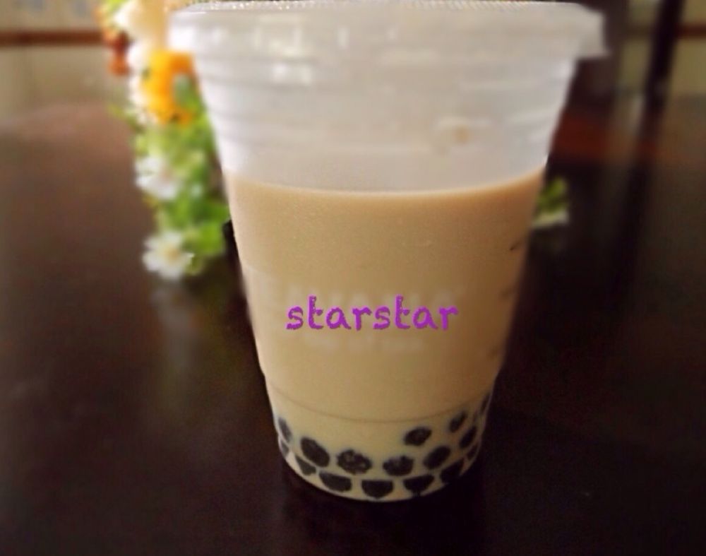做好的一杯珍珠奶茶,这种家常的杯子看不见珍珠。