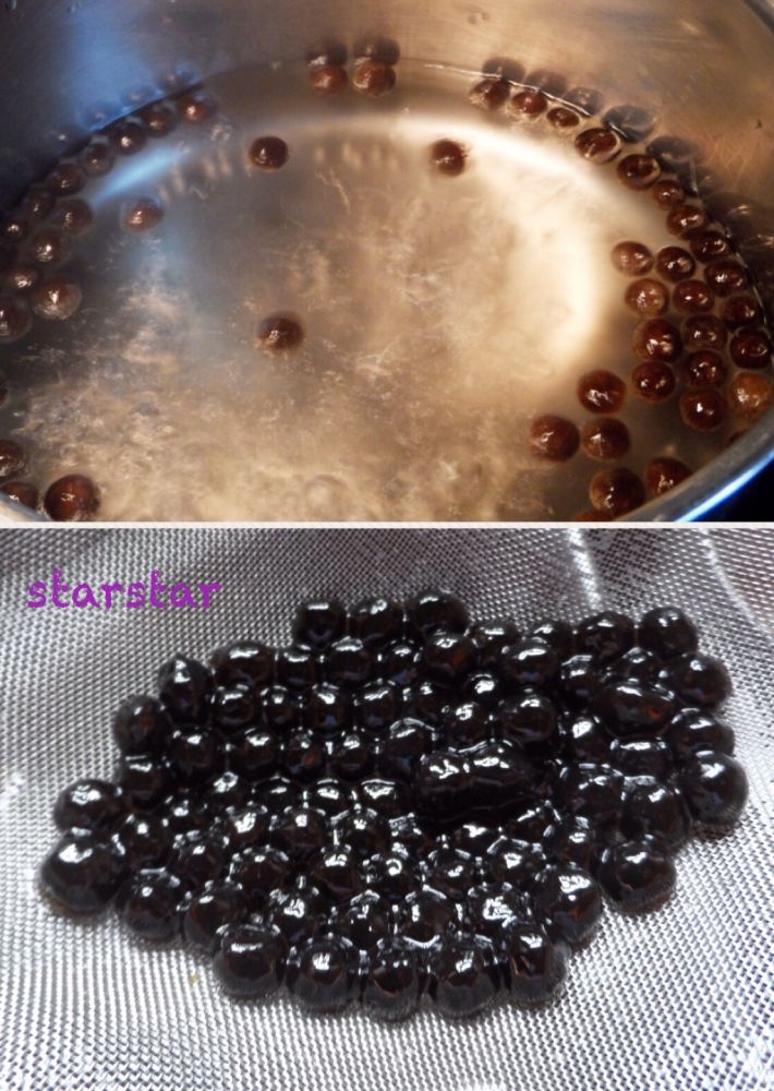 1,煮珍珠粉圆。我是完全按照袋子背后的说明煮的粉圆。