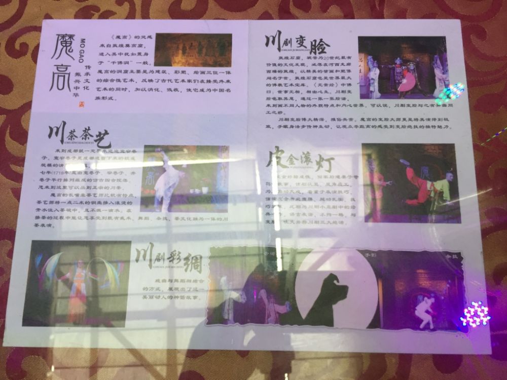 这是我们第一次看川剧,川剧里面有很多绝活,这天的表演节目有:
