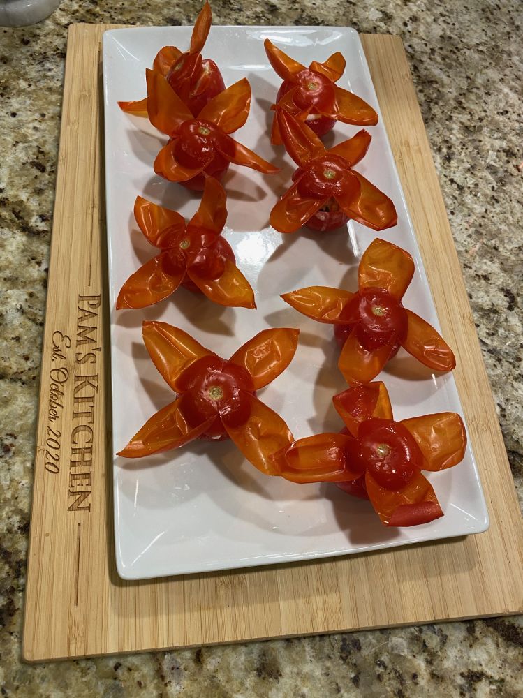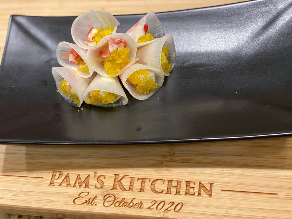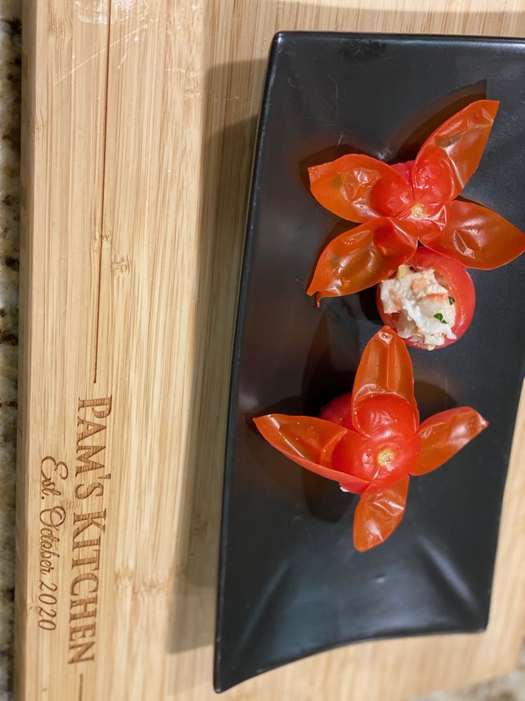 秋风紧,落叶纷,嫣红灿金满地。霜叶艳,艳过春花。春花尚远,却在厨房开。帝王雪蟹肉,化为三样花。片的纸样薄的萝卜卷成喇叭样,填入雪蟹肉,酱料和淡黄的腌鱼蛋,排在一起就是绽开的百合。萝卜的辛辣让雪蟹格外鲜甜。小红番茄掏空,填入调料和雪蟹肉,就是盛放的红梅。最后雪蟹肉加入奶酪在黄椒盅里烤。雪蟹滋腴鲜香,那算是超级版的黄刺玫 吧。雪蟹佳肴让早春和深秋在厨房相遇,岂不乐哉!
