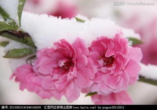 北方立春,还是冰天雪地,等到三月末桃花先开,但时常会被白雪覆盖。