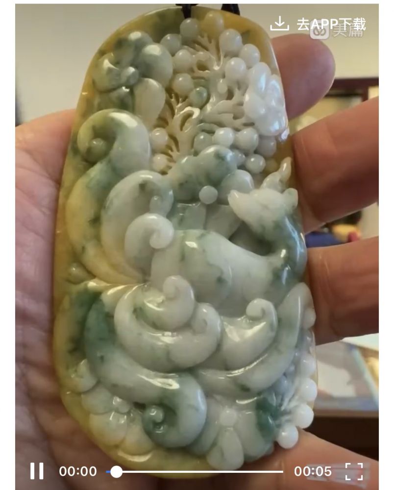宋少理大师手下的这方九尾灵狐,黄翡为底,飘花为灵,三色天然晕染,浑然不似人工。