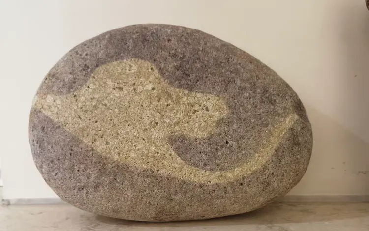 平平凡凡一块河里冲出来的卵石,灰扑扑、沉甸甸,安安稳稳摆在这儿,没有一丝花哨。可石面上,清清楚楚盘着两条龙,身形曲曲弯弯,神态活灵活现,起势、游走、盘旋,每一处线条的转折、气韵的舒展,全是老天爷一笔一笔,经千百年流水冲刷、自然浸染,慢慢长出来的。