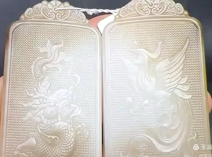 料子更是天成的妙趣。糖色如经年沉淀的暖玉光泽,温温糯糯地裹在外围,玉料最致密的内核,糖色沁不进去,独独留出一片莹润干净的白玉心。匠人顺着这天意,龙纹落于一侧白心,凤纹落在另一侧,一左一右,天生便是一对。