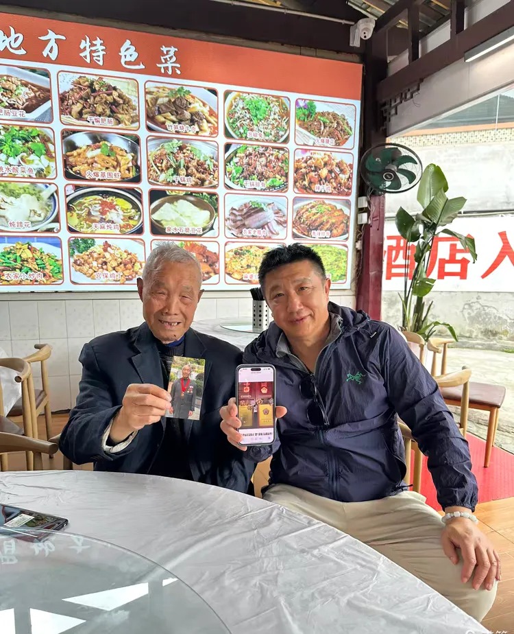 店家一家人性情豪爽热忱,待人朴实和善,言谈之间格外亲切。感念这份不期而遇的缘分,我取出珍藏的父亲入朝作战四十周年纪念章留影,老人家戴好自己的纪念章,二人并肩合影,一帧画面,定格两代后勤老兵的山河记忆,让一段烽火岁月,在市井烟火里温柔相逢。