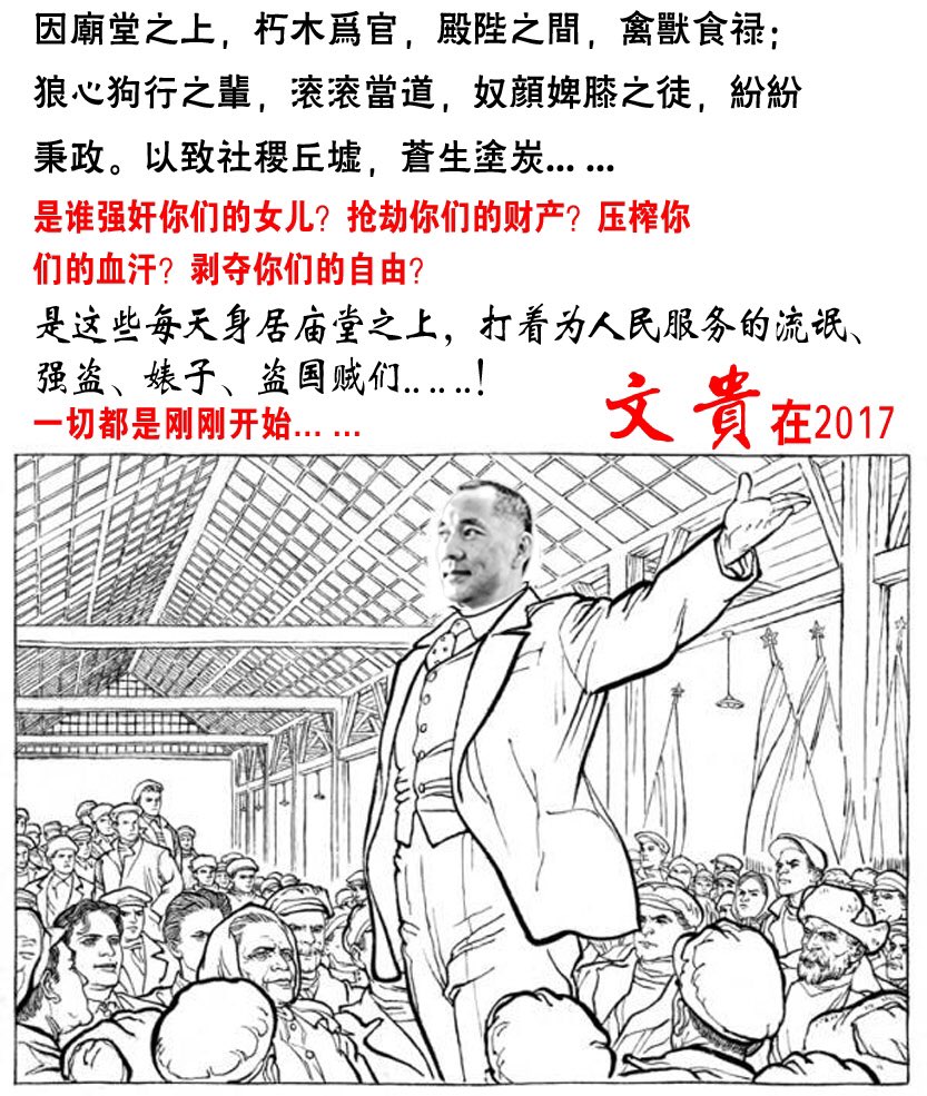 网民绘制“文贵揭竿而起 近平帝梦难圆”