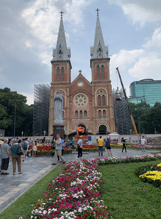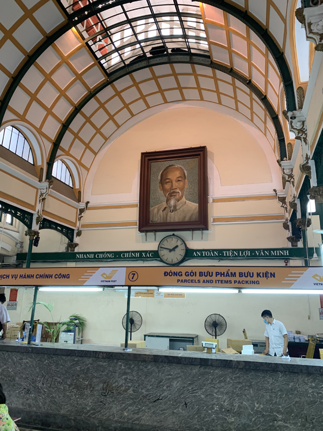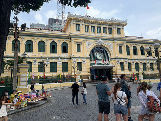 但越南导游胸有成竹, 他带我去大商场, 买了个大箱子。拆除了纸箱和口罩盒, 3000多个还是塞不进我的两个大行李包, 只有忍痛扔掉刚买到的所有礼品和大部分随身物品。正好第二天参观西贡著名的法式邮政局和大教堂, 我就顺便往大陆内地, 寄走了6 个邮包。我知道大陆部分地区开始扣押和偷窃抗疫物品, 便在邮包中, 夹杂了食品, 咖啡和我带不走的旧衣物等, 混在一起寄出。银子确实花了不少, 也不知道结果会如何, 但感觉有了安慰, 也松了一口气。