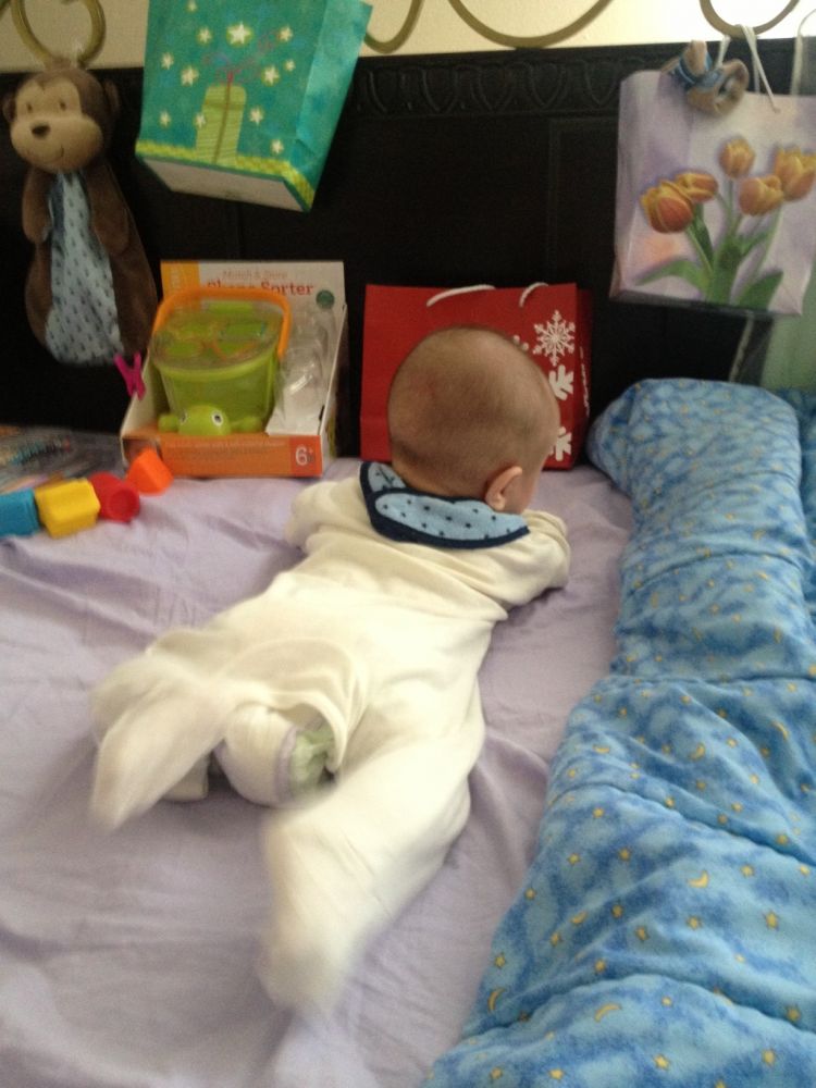 图为笑笑佛苦练爬行,丢盔卸甲: