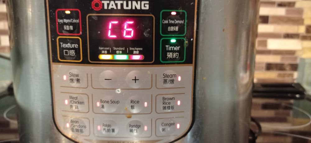 高压锅突然坏了,所有的灯都在闪亮,特别是LED灯闪亮着红色的"C6"。这锅才$50多,值得修吗?把锅甩了算了。