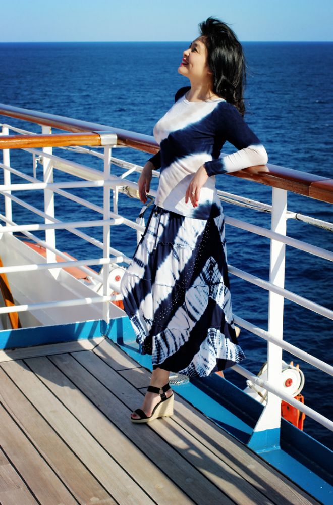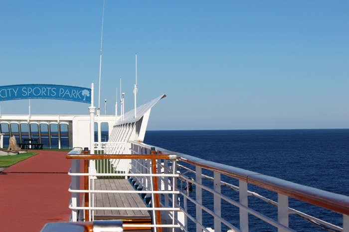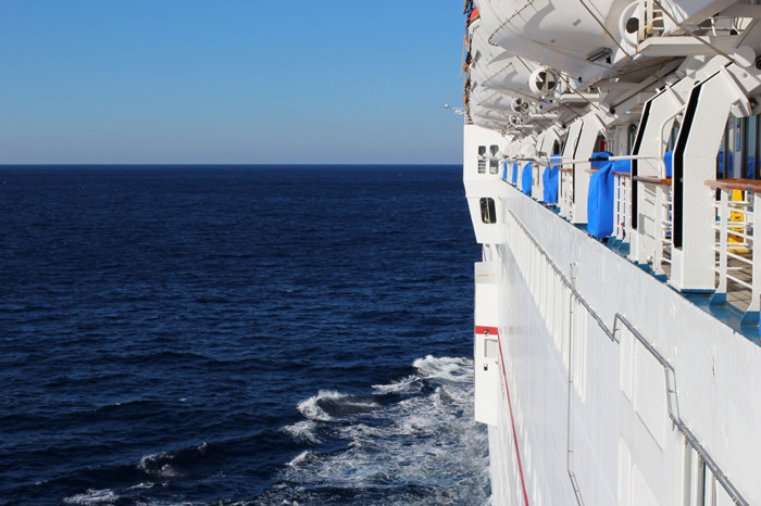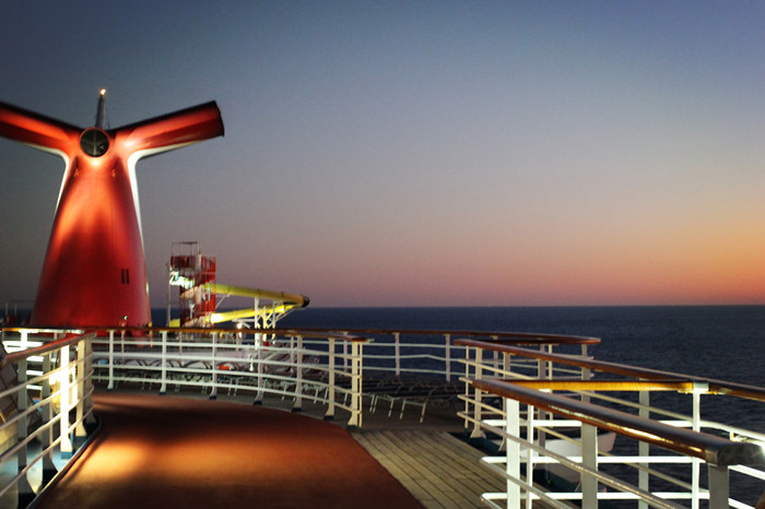 阳光照耀在美丽的加勒比海游轮上