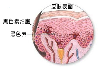 皮肤中的黑色素是由位于表皮底层的一种叫黑素细胞产生的,这些黑素细胞占表皮所有细胞的百分之三。黑素细胞被太阳中的紫外线照射或者皮肤有炎症时会开始产生黑色素。这些黑[